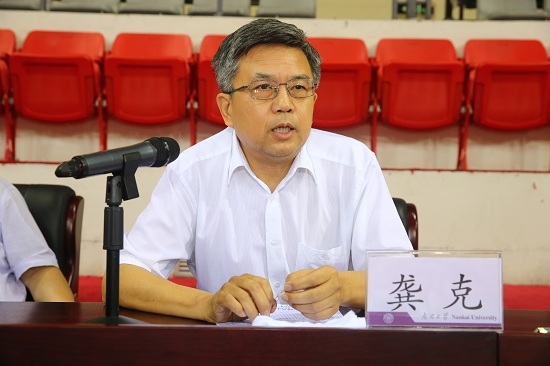 南开新闻网讯(记者 张轶帆 摄影 任永华 吴军辉)7月17日,学校在体育中心召开2015年全校教师大会,校党委书记薛进文,校长龚克,校党委副书记刘景泉,校党委副书记、纪委书记张式琪,校党委副书记、副校长杨克欣,校党委副书记张亚,副校长许京军、佟家栋、关乃佳、朱光磊、孙广平出席,全校教职工参加。大会由龚克主持。