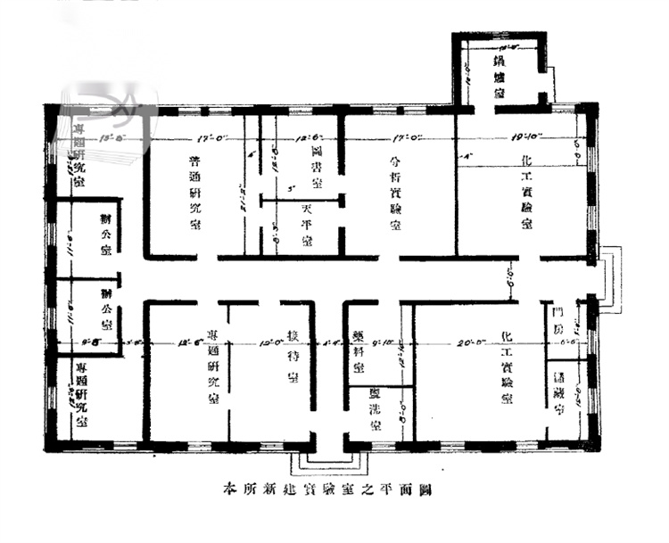 应用化学研究所实验室平面图(源自《南开大学应用化学研究所报告书》第二卷) 南开大学化学应用研究所在创办之初,由于其研究工作注意结合当时中国工业水平,根据中国尤其是华北、天津的物产特点,以及社会实际需求,来确定研究方向,受到当时工业界的欢迎。经初步统计,1932年到1937年,该所先后接受分析化验样品共约300多个,帮助企业研究解决了蜂蜜脱臭、草帽辫漂白、茶油硬化等不少生产难题。该所还仿制了金属磨光皂、油墨、复写纸、制革发光水等,自行试制成功了酒精、硬脂酸、油酸、甘油、钾皂等。这些符合当时中国的工业水平和经济水平,且紧贴民生的社会急需的化工产品,对缓解市场需要,改善民众生活,抵制洋货起到了积极的作用。 期间,南开大学应化所还承担化工厂的设计与建造工作。在1933年,该所研究人员仅用13万元就完成了利中制酸股份有限公司的唐山原厂改造和天津新厂建设等两项任务,大幅度低于外国公司建设新厂的25万元预算报价。其中,新建的天津化工厂,不仅产量上达到了日产3吨的要求,产品的质量也优于国外产品。该所此举,改变了中国化工的建设与安装项目一直由外国公司包揽的局面。