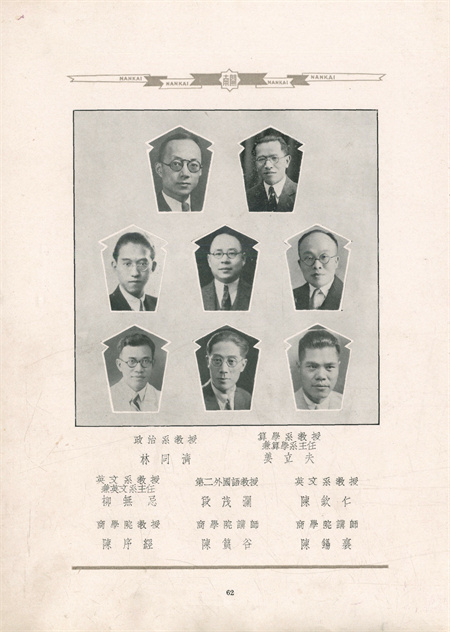 1919年在南开中学南部建成的教学楼,是南开大学初创之地 自1904年南开中学成立,张伯苓和严修即将严选师资作为办学的先决条件。将最优秀的人才招揽到南开,也是南开大学筹办过程中重要的一环。为此,严修与张伯苓先后于1917、1918年启程,前往美国。他们利用一年多的时间,学习西方先进教育理论,考察美国高等教育体制和中国留学生团体,为即将成立的南开大学择选人才,储备师资。 当时的天津,由于开埠较早,地理位置独特,吸引了大量外来人口与资源,成为中国北方工商金融与时尚文化辐辏的中心都市,为南开大学的建立与发展提供了社会基础和资源保障。 在成立之初的3年内,南开大学即聘请到了凌冰(美国克拉克大学博士,大学部主任)、姜立夫(哈佛大学博士,算学系主任)、饶毓泰(普林斯顿大学博士,物理系主任)、邱宗岳(克拉克大学博士,理科主任)、应尚德(哥伦比亚大学硕士,生物系主任)、薛桂轮(麻省理工学院硕士,矿科主任)等来校任教。他们既潜心教书育人,又注重学术研究,成为南开大学百年学科发展的奠基人和开创者。