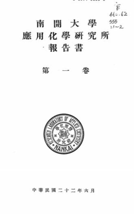 《南开大学应用化学研究所报告书》 1933—1937年,每年一卷,作为对当年工作的总结 1946年10月,南开大学在天津复校,迅速恢复了原有的电机工程系、化学工程系,新建了机械工程系。1947年3月,张克忠再次返回母校任教,恢复了应用化学研究所(后改称化工研究所),于1948年1月任工学院院长。随后,他带头承担教学科研任务,亲自编写教材,与师生们一起齐心协力保护工学院,迎接新中国成立,为当时的化学工程教育和化工企业技术进步做出了重要贡献。 1952年全国院系调整,南开大学工学院整建制划归到天津大学,三位系主任张克忠、孟文喆、陈荫谷成为该校相关学科的创建者或带头人,为天津高等教育发展做出了重要贡献。其中,天津大学的化工学科至今在全国仍名列前茅,也是该校最好的学科之一。 总之,天津的一方热土孕育了南开,南开人的自强不息,踔厉奋发成就了南开的精神文化。在百年发展历程中,南开大学积淀了深厚的历史文化底蕴、浓郁的学术研究氛围和光荣的爱国主义传统,为国家和天津的社会经济发展和文化文明进步,做出了卓越的历史贡献,留下了不灭的时代记忆。 当前,新一代南开人正在牢记殷殷嘱托,勇担时代使命,努力实现内涵式高质量发展,为中国式现代化建设以及天津区域发展贡献力量。我们也期待更多优秀天津学子来到南开园,同唱南开校歌,共答爱国三问,不负青春,不负韶华,书写更加精彩的南开故事! |