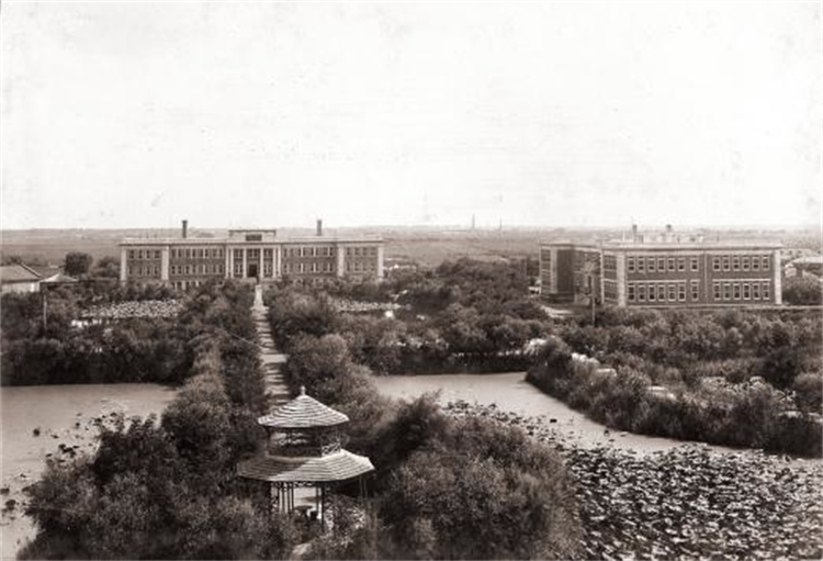 20世纪30年代校园南部风景。图中右侧建筑为秀山堂,左侧为思源堂 1923年,整体搬迁到八里台校园的南开大学,有了更广阔的办学空间,也吸引了更多高端人才来到天津发展。随着蒋廷黻、李济、何廉、方显廷、李卓敏、张彭春、汤用彤、萧公权、林同济、陈序经、徐谟、张纯明、罗隆基、梅汝璈、柳无忌、司徒月兰、黄佐霖、梁宗岱、黄钰生等具有文学、历史、哲学、教育、经济、政治学科背景的专业人才从海外归来,执教南开,南开大学的人文社会学科取得了长足进步,发展势头良好。同时,杨石先、张克忠、张洪沅、孟广喆、竺可桢、冯敩棠、申又枨、李继侗、熊大仕等理、工科人才相继回国,加强了南开大学理科师资力量,又创办了化学工程、电机工程2个工科专业,逐步形成了文、理、商、工并重的办学格局,为学校发展成为综合性研究型大学奠定了坚实学科基础。